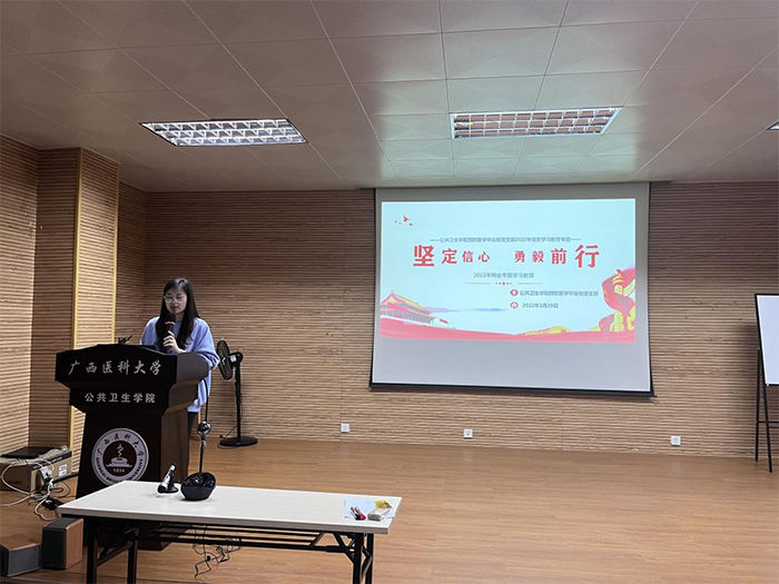 当前位置:学生工作为深入贯彻学习2022年全国“两会”精神,增强党员同志们的使命感和责任感。2022年3月29日晚,公共卫生伦理片预防医学毕业班党支部开展“坚定信心,勇毅前行”主题党日活动。预防医学毕业班党支部正式成员、预备党员、积极分子共55名同志参加,活动由支部书记郑冬婷主持。