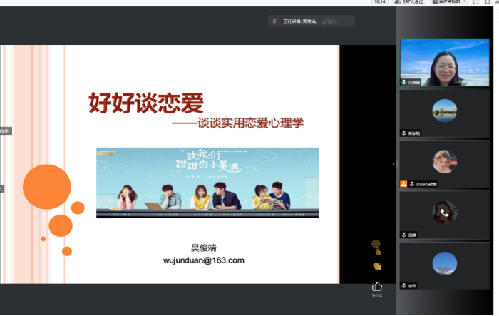首先,吴俊端教授以马斯洛需求层次理论为切入点,深入浅出地从马克思主义恋爱观、男女心理差异、如何好好谈恋爱、解决矛盾的技巧等几个方面向同学们进行讲授与指导,同学们认真倾听,积极参与互动交流,受益匪浅。随后,吴教授结合同学们的实际问题,从恋爱心理学角度对爱情的本质、特性、心理特点进行剖析,帮助大家解决在恋爱情感方面遇到的心理困惑,引导同学们树立正确的恋爱观,理智处理恋爱中产生的矛盾以及在失恋后及时地进行自我调适,提高心理健康水平。最后,唐凤副书记作总结发言。她表示伦理片高度重视大学生心理健康教育工作,强调了本次心理健康教育讲座的重要性,希望同学们通过此次讲座科学认识自我发展,加强心理素质培养。