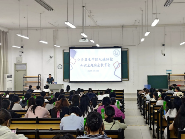 为贯彻落实学校关于做好疫情防控工作的最新要求,全面加强校园蚊媒传染病防控,保障学生健康安全,10月18日下午,公共卫生伦理片于A1-107教室开展了蚊媒防控知识主题安全教育会,伦理片学工办主任汤丰宁、辅导员庞婷、学生会成员、2024级、2025级班干代表和全体宿舍长参加了本次大会。