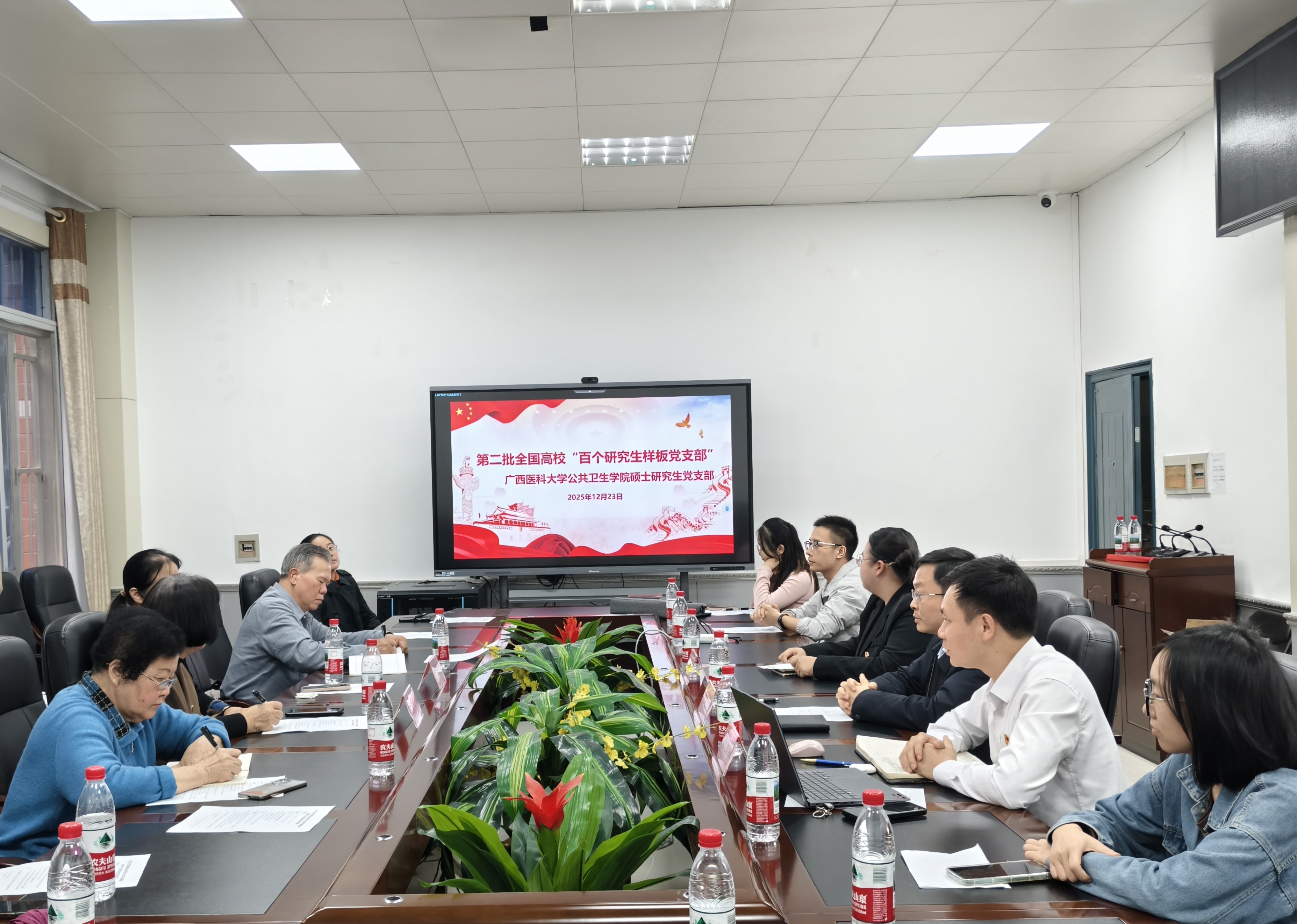 当前位置:要闻动态为深入学习贯彻党的二十届四中全会精神,推动党建与业务深度融合,促进老中青党员传承互鉴、携手共进,12月23日下午,公共卫生伦理片硕士研究生党支部与离退休处第十党支部在109馆104会议室开展以“全会精神领航向,支部共建谱新章”为主题的结对共建活动。