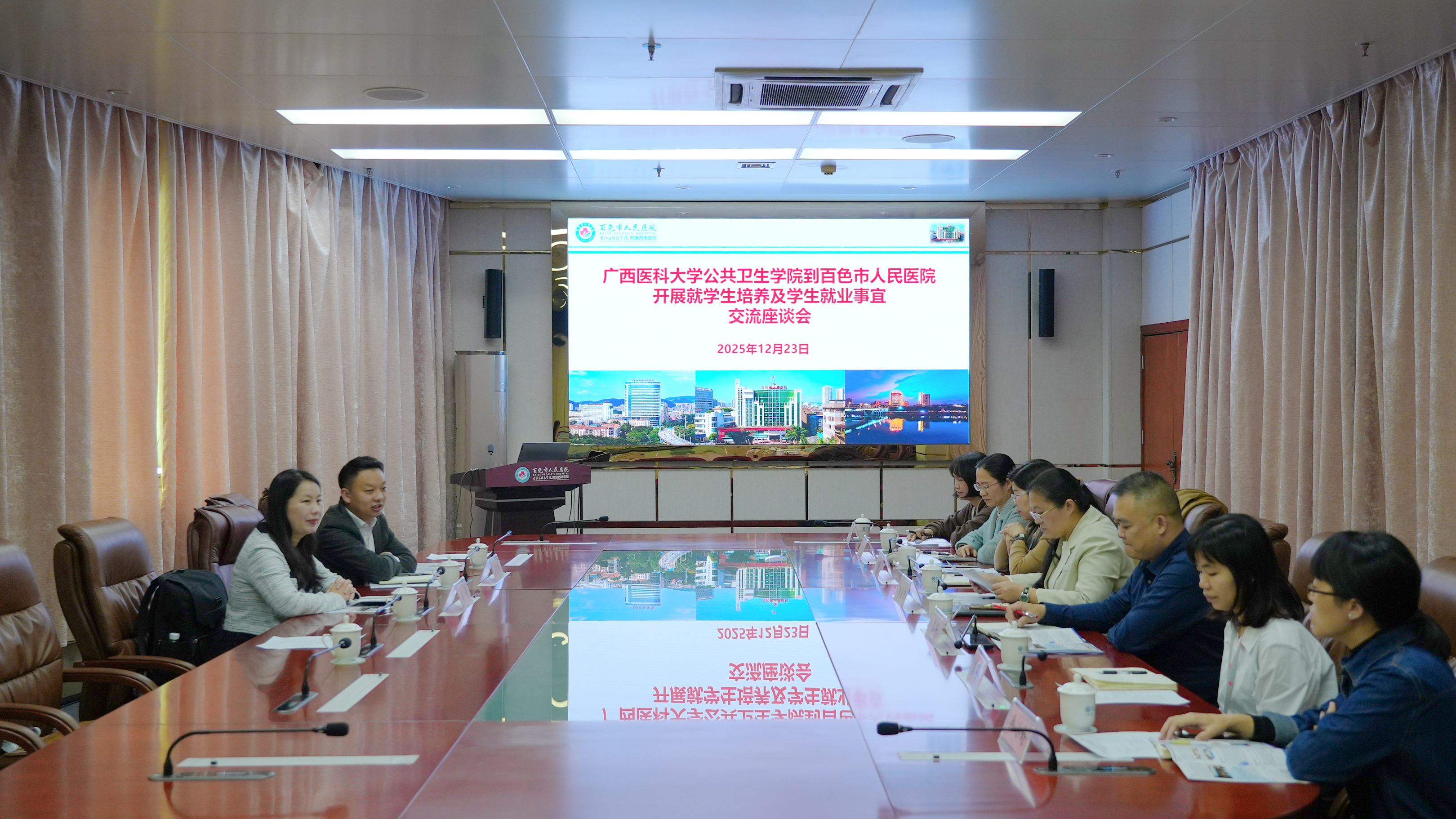 • 为精准对接用人单位需求,进一步提升人才培养与社会需要的契合度。12月23日,公共卫生伦理片院长苏莉一行4人赴百色市人民医院、百色市疾病预防控制中心开展“访企拓岗”专项活动,与用人单位负责人深度座谈交流。