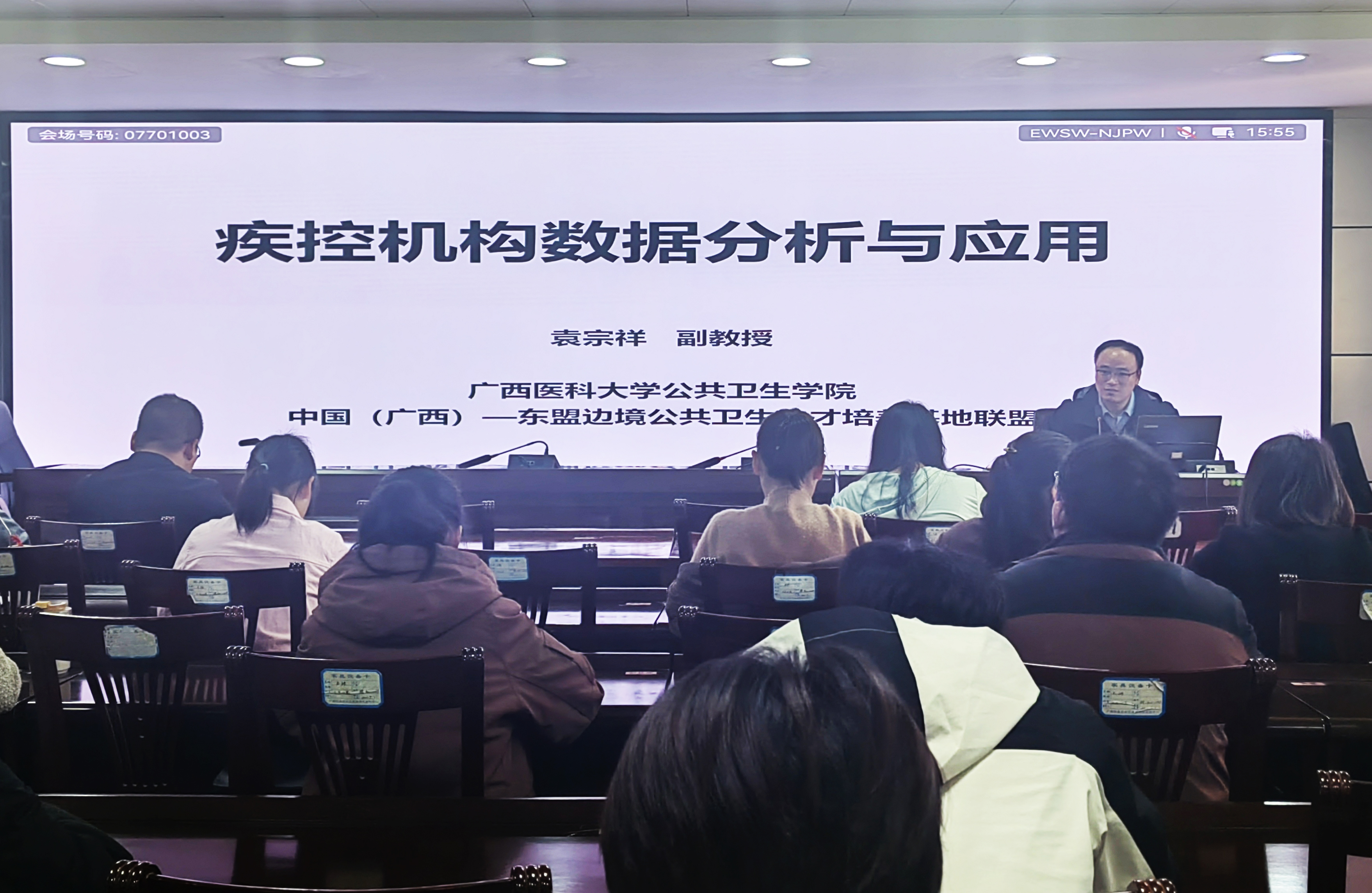我校教师为国门疾控中心业务骨干讲授了“疾控机构数据分析与应用”“如何开展现场流行病学调查”等课程。培训内容紧密围绕国门疾控一线业务需求,聚焦跨境传染病监测数据深度分析、人工智能(AI)赋能数据管理、新发突发再发传染病现场流调关键技术等内容。参训人员表示:课程内容针对性强,学得会、用得上,特别是关于传染病疫情数据研判与应急处置流程的讲解,对提升跨境传染病防控具有指导作用。