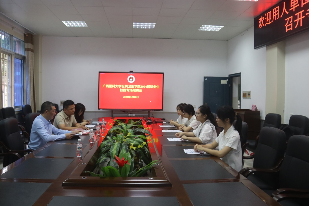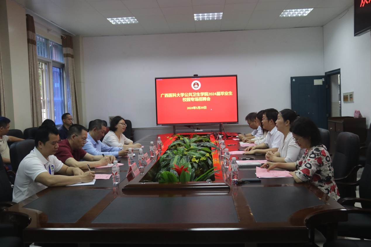 当前位置:学生工作2024年5月20日上午,公共卫生伦理片邀请广西南环检测科技有限公司、广西南宁恒之创仪器设备有限公司、广西海迅仪器设备有限公司、广西德高仕安全技术有限公司到伦理片 开展2024届毕业生校园专场招聘会。伦理片领导班子、卫生检验与检疫学系主任、辅导员、班主任和部分毕业生参加了本次活动。