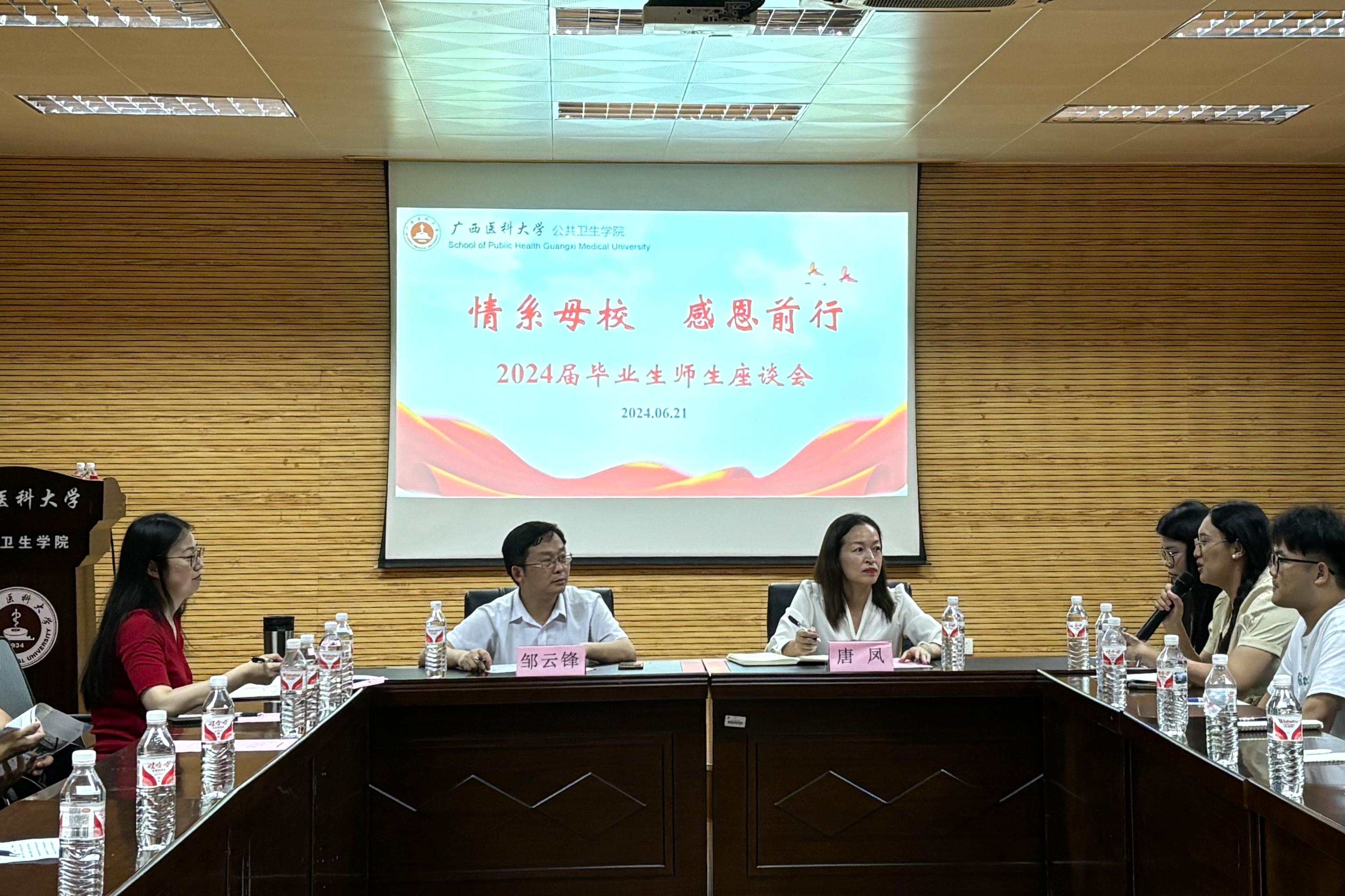 当前位置:学生工作6月21日下午,公共卫生伦理片在校本部105馆一楼报告厅举办2024届毕业生师生座谈会。伦理片党委书记邹云锋、党委副书记唐凤、考研帮扶教师、辅导员、班主任和2024届毕业生代表参加本次会议。