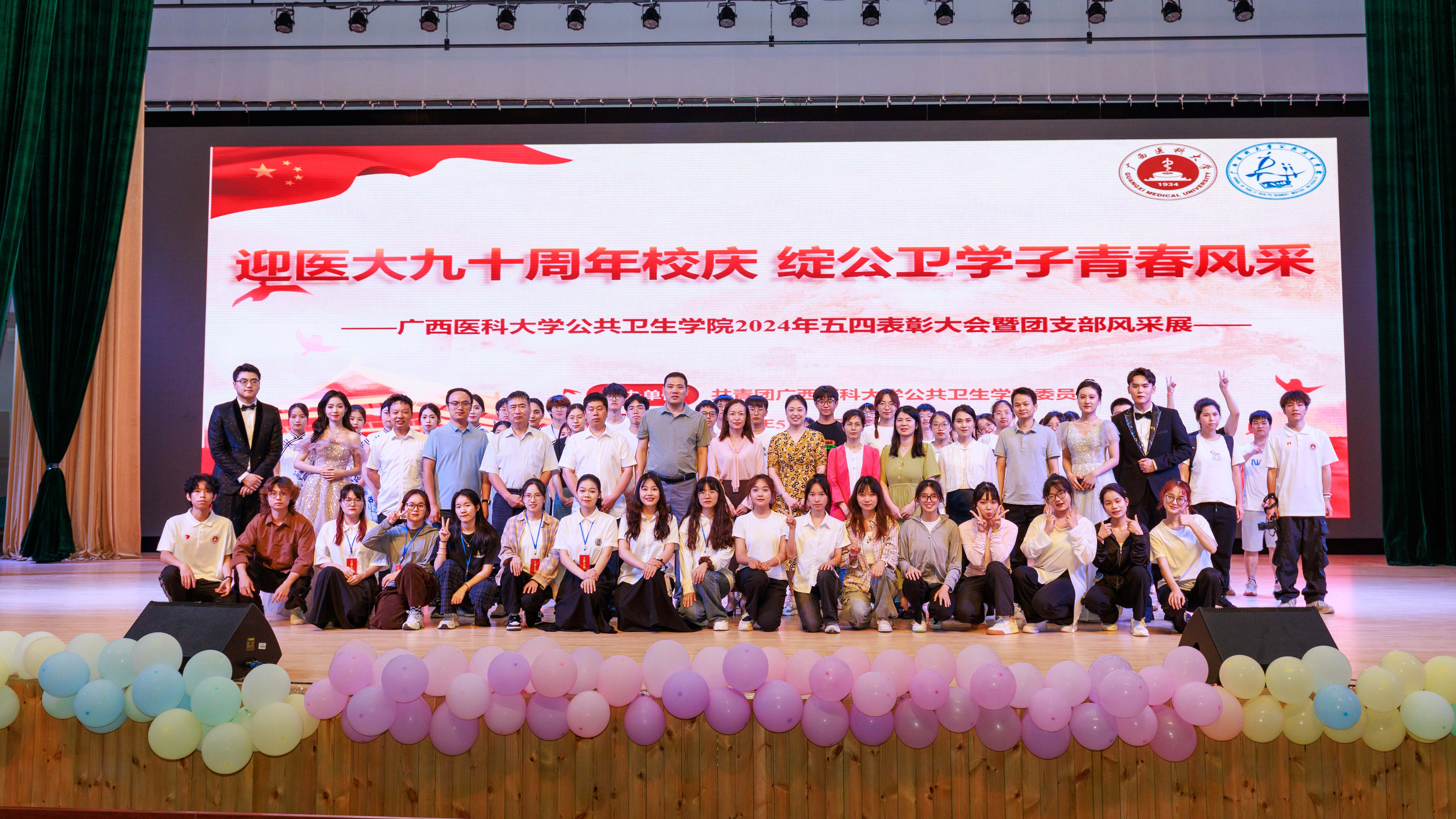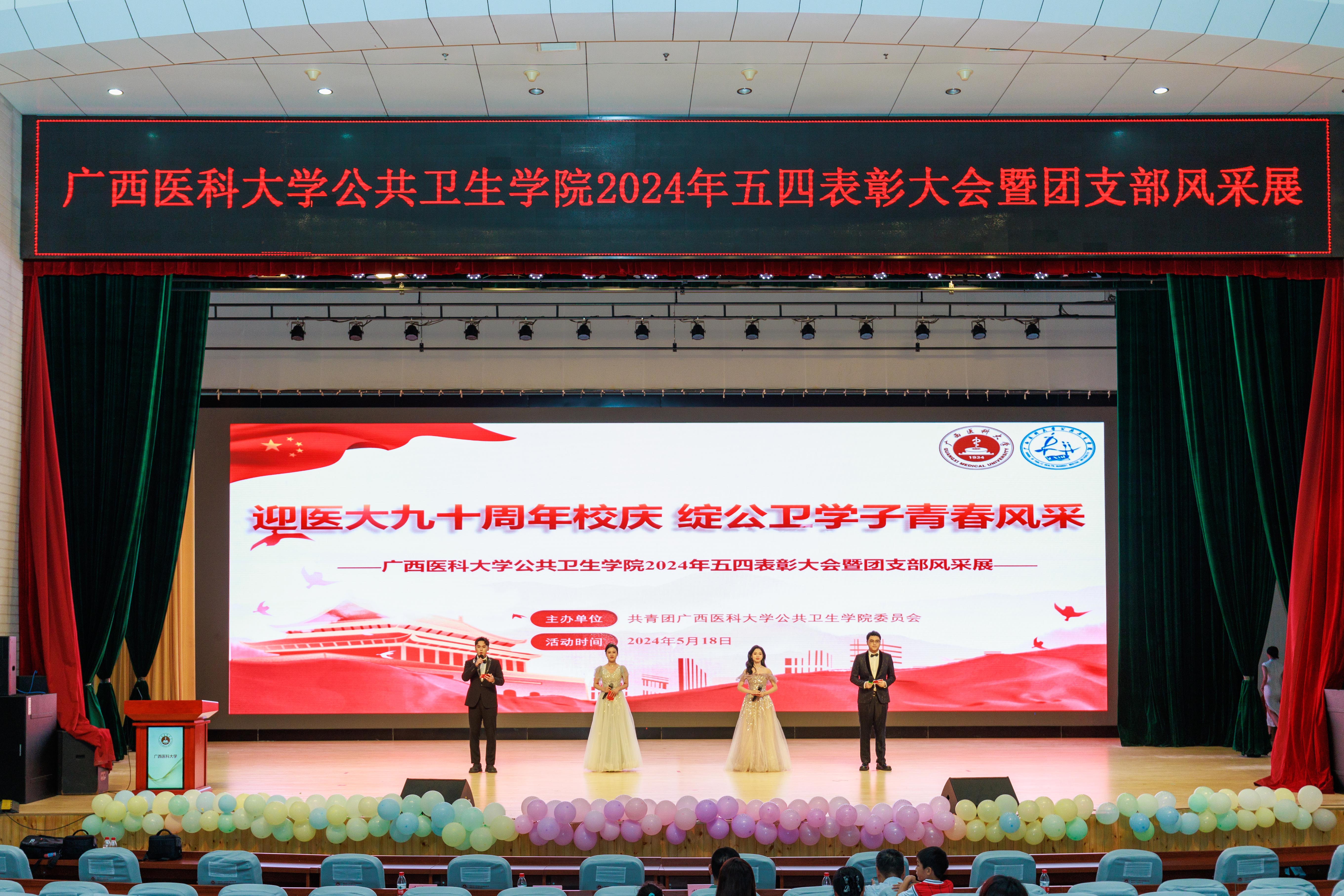 当前位置:要闻动态2024年5月18日下午,公共卫生伦理片于广西医科大学校本部图书馆演讲厅举行2024年五四表彰大会暨团支部风采展。伦理片院长苏莉、党委副书记唐凤、教师代表以及各团支部学生等共800多名师生参加了本次活动。