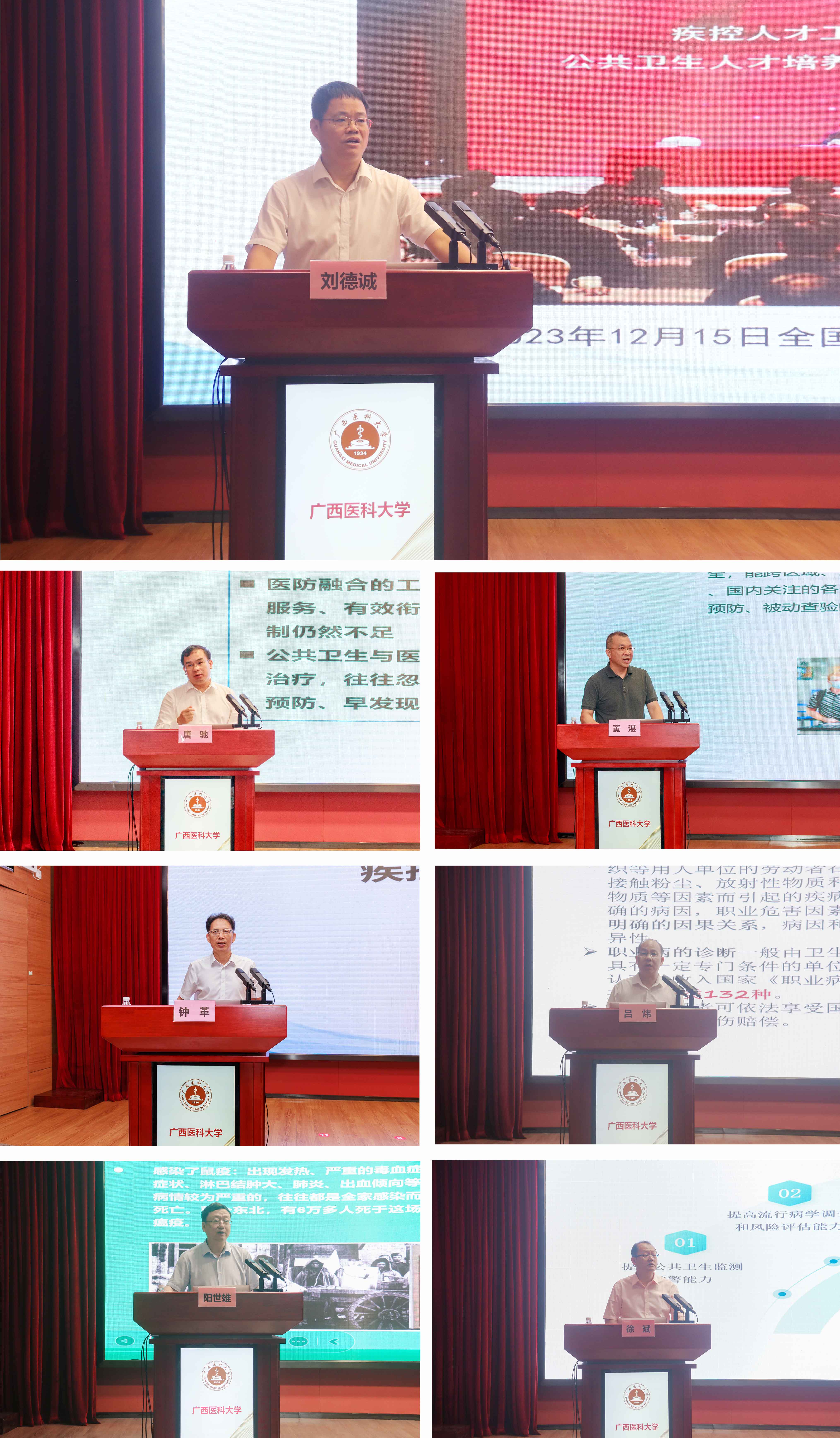 会上,广西壮族自治区疾病预防控制局副局长刘德诚、南宁市卫生健康委员会主任唐驰、南宁海关卫生检疫处处长黄湛、广西壮族自治区疾病预防控制中心主任钟革、广西壮族自治区工人医院/广西职业病防治研究院党委书记吕炜、南宁市第四人民医院院长阳世雄、南宁市疾病预防控制中心主任徐斌等7位专家先后围绕疾病预防控制事业的高质量发展进行了专题报告。